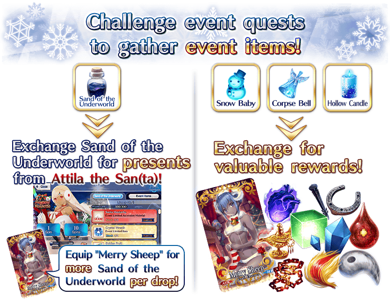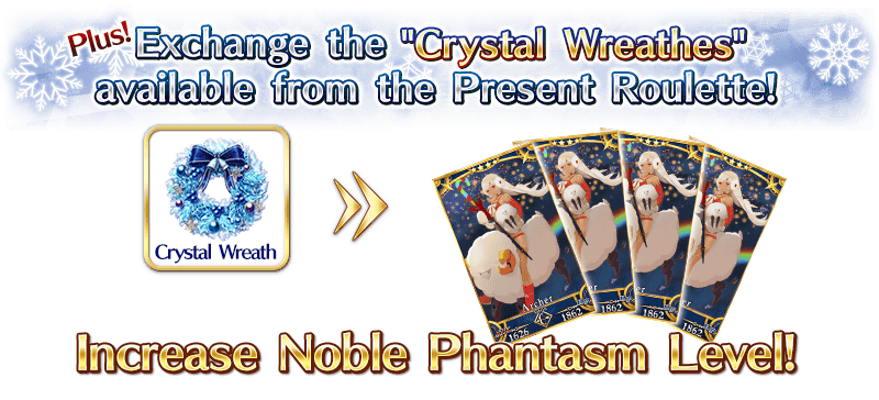 * The event item Crystal Wreath, available from the Present Roulette, can be exchanged to increase Attila the San(ta)'s Noble Phantasm level and for other valuable items.