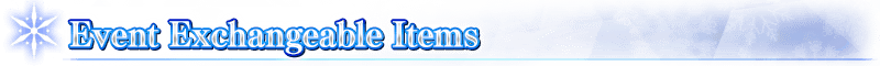 Event items can be exchanged for the following items through "Event Item Exchange," accessible from the "Event Rewards" button in the upper right corner of the Terminal.