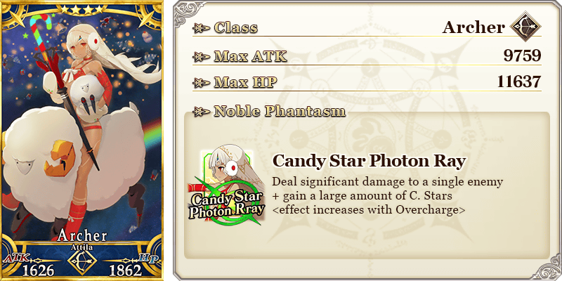 See "★4 (SR) Attila the San(ta)" in action on Youtube, where we're sharing an exclusive video of her Noble Phantasm!