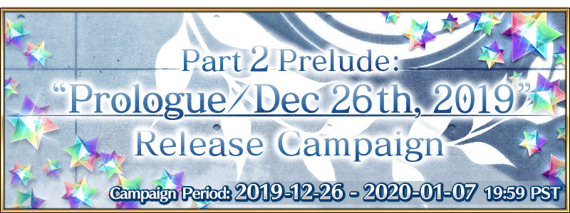 Take advantage of the Part 2 Prelude: “Prologue/December 26th, 2019” Release Campaign from 2019-12-26 00:00 - 2020-01-07 19:59 PST!