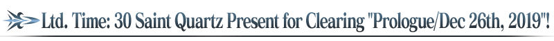 During the campaign period, the mission “[Limited Time] Until 2020-01-07 19:59 - Complete ‘Prologue/Dec 26th, 2019’ ” will be added to the Master Missions tab. Clear this mission to receive 30 Saint Quartz!