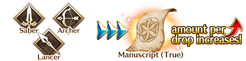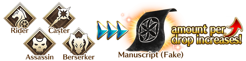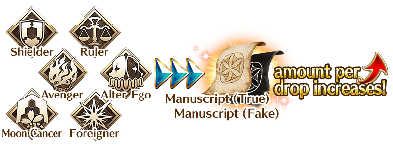 Increase the amount of Manuscript (True) and Manuscript (Fake) per drop by choosing certain Servant classes to include in your party!