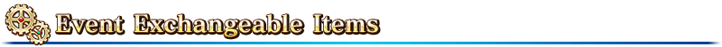 Event items can be exchanged for the following items through "Event Item Exchange" in the Da Vinci Workshop.