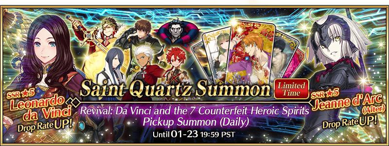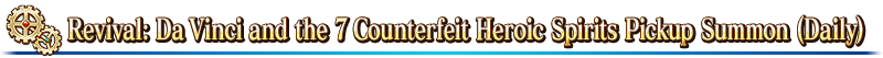 The "Revival: Da Vinci and the 7 Counterfeit Heroic Spirits Summon (Daily)" is also going on!
