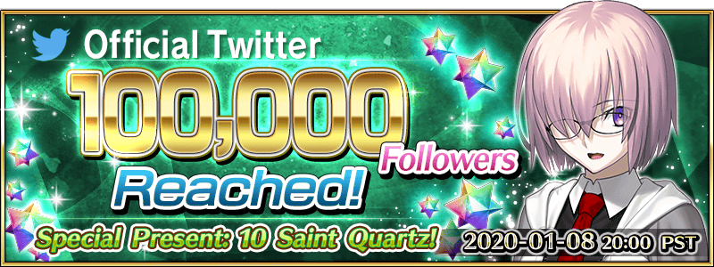 [Chaldea PR] 10 Saint Quartz to Commemorate 100,000 Twitter Followers!