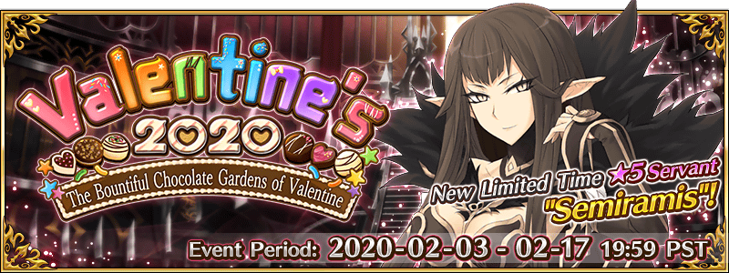 New Servant Semiramis will receive an ATK bonus within “Valentine's 2020: The Bountiful Chocolate Gardens of Valentine”!