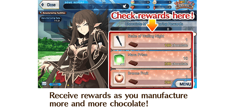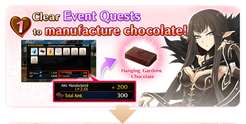 * Chocolate is manufactured when you collect chocolate through battle drops in event quests.