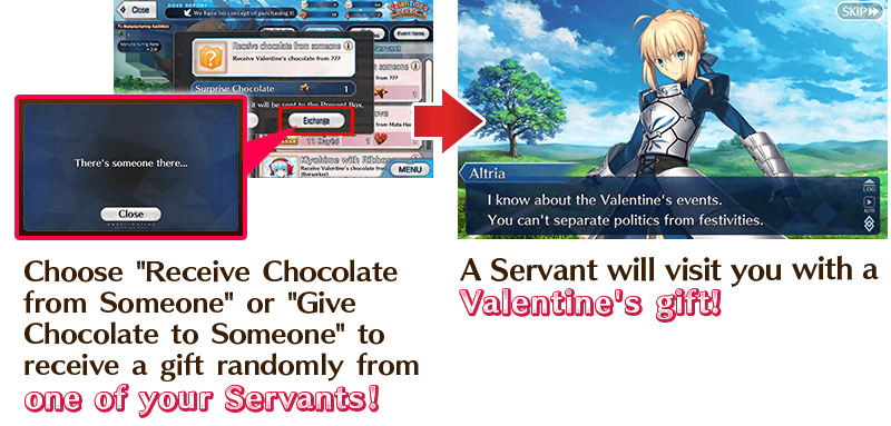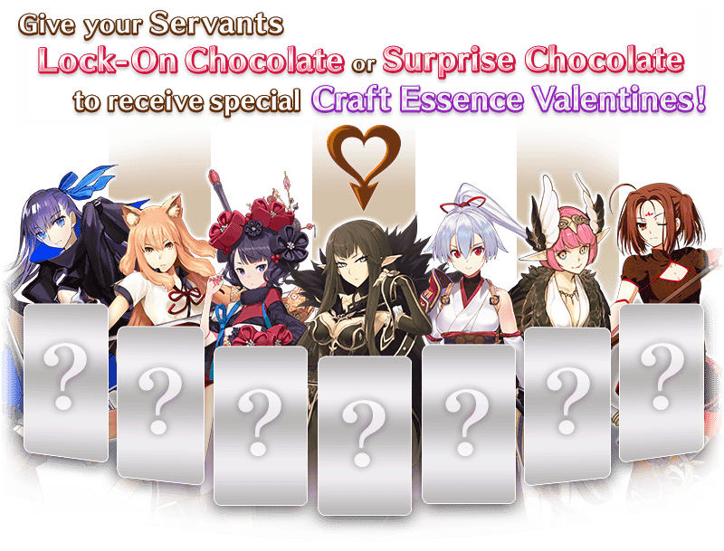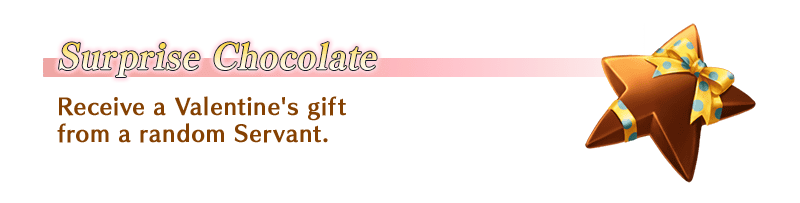 * “Surprise Chocolate” exchange will only be possible with Servants that you have summoned in the past and are listed as available for “Lock-On Chocolate” exchange within the “Get Chocolates” or “Give Chocolates” tab.