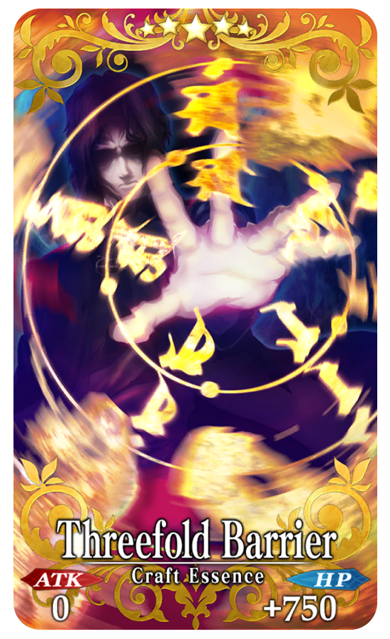 Threefold Barrier ATK 0 HP 750 (MAX: 3000) Skill Reduce damage taken by 1000 (3 times) for yourself + increase appearance rate of [Base Model] enemies by 25% [Event Only]