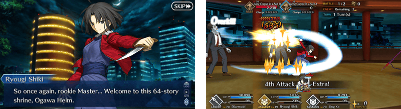 Limited Time Servant "★4 (SR) Ryougi Shiki (Assassin)" will temporarily join your party, fighting by your side as you clear the map and uncover the secret of the mysterious distortion near Singularity F!
