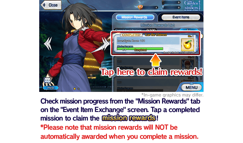 "Revival: the Garden of sinners/the Garden of Order" will require you to complete missions such as "gather a certain amount of an item" or "defeat a certain type of enemy." Clear these missions to receive lavish rewards!