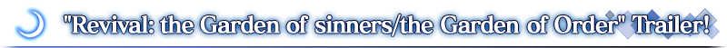* This is a "revival" version of the 2018 Limited Time Collaboration Event "the Garden of sinners/the Garden of Order." Certain elements have been adjusted for a more enjoyable experience.