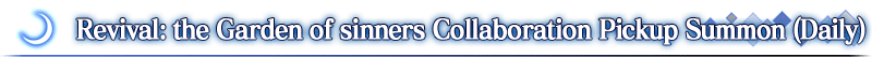 The Revival: the Garden of sinners Collaboration Pickup Summon (Daily) is also ongoing!