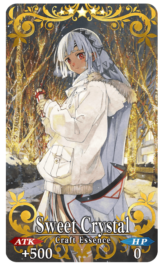 ★★★★★SSR Sweet Crystal ATK 500 (MAX: 2000) HP 0 Skill Apply Ignore Invincible & begin battle with NP charged at 30% for yourself |