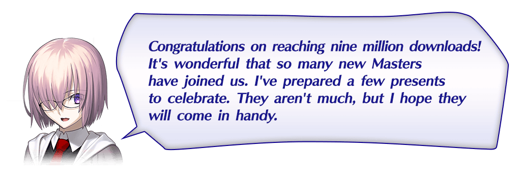The 9 Million Downloads Commemorative Pickup Summon (Daily) is also ongoing!