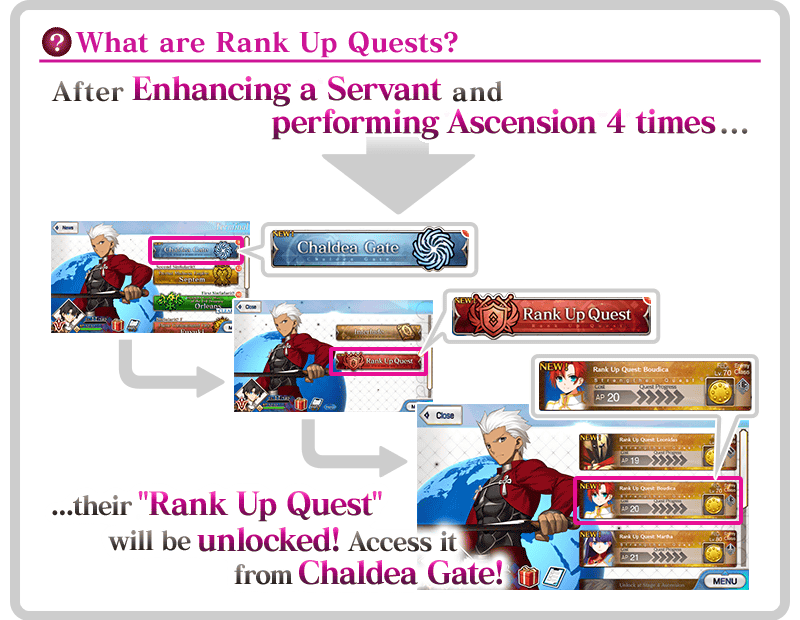 * Please note that newly added Rank Up Quests will not be displayed if you do not possess the Servant in question.