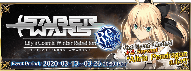 * This event is a “Revival - Lite” version of the 2018 Limited Time Event “SABER WARS - The Caliburn Awakens.” Certain elements have been adjusted for a more enjoyable experience.