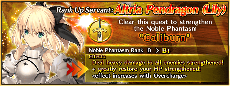 A Rank Up Quest will be added for Altria Pendragon (Lily). Clear this quest to strengthen her abilities and receive Saint Quartz as a reward!