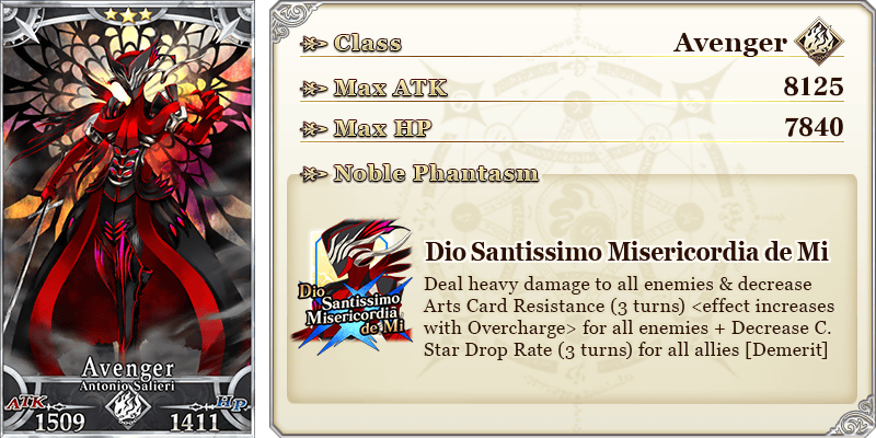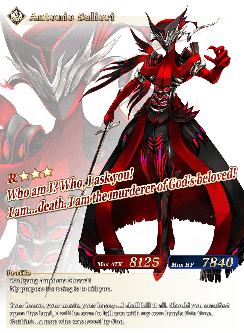 See "★3 (R) Antonio Salieri" in action on Youtube, where we're sharing an exclusive video of his Noble Phantasm!