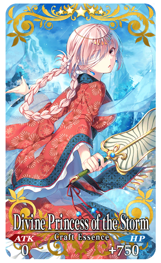 [Event Limited Craft Essences] ★5 (SSR) "Divine Princess of the Storm" [Skill Enhancement & Ascension Materials] Spirit Root Warhorse's Young Horn Phoenix Feather Octuplet Crystals Mystic Gunpowder [Skill Enhancement Materials] Crystallized Lore [Other Items] Hero Crystal: Meteor Fou ALL ★4 (HP) Hero Crystal: Corona Fou ALL ★4 (ATK) Mana Prism 10,000 QP |