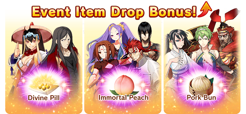 Include certain Servants in your party for "Revival: Sanzang Coming to the West - Lite" event quests to gain a bonus to the amount per drop for the event items Divine Pill, Immortal Peach, Pork Bun, and Grand Lotus.