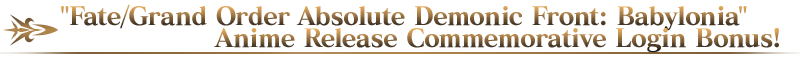 To express our gratitude to everyone who tuned in, we're holding "'Fate/Grand Order Absolute Demonic Front: Babylonia' Anime Release Campaign: Part Four!"