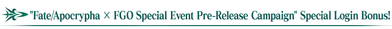 In preparation for the upcoming event, we're holding the "Fate/Apocrypha × Fate/Grand Order Special Event Pre-Release Campaign"!