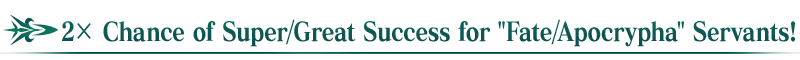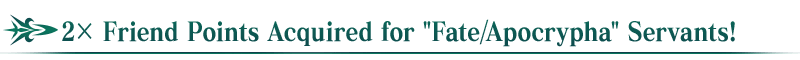 During the campaign period, for certain "Fate/Apocrypha" Servants, Friend Points awarded when you choose another Master's Servant as support or other Masters choose your Servants as support will be doubled.