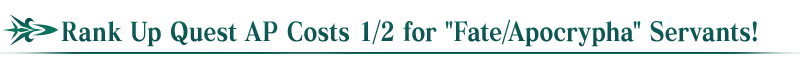 For a limited time, we're halving AP costs for the Interludes and Rank Up Quests of "Fate/Apocrypha" Servants!