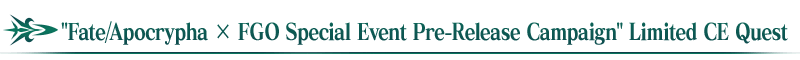 Clear the "Fate/Apocrypha" Acquisition Quest and Fate/Apocrypha × Fate/Grand Order Special Event Celebration Quest, available from Chaldea Gate during the campaign period, to receive two Quest Limited Craft Essences!