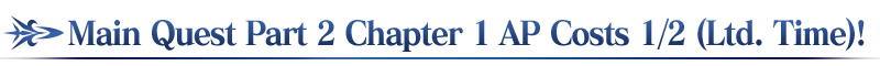 On top of the permanent half AP cost for Part 1 story quests, AP costs will be further halved for a limited time!