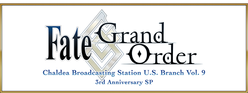 Tune in to “Chaldea Broadcasting Station U.S. Branch Vol.9” on 2020-07-06 20:00 PDT for a special broadcast to celebrate three years of “Fate/Grand Order” English version!