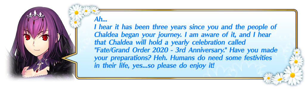 For more information about the ongoing "Fate/Grand Order 2020 - 3rd Anniversary Singularity Pickup Summon (Daily)," please see the article linked below.