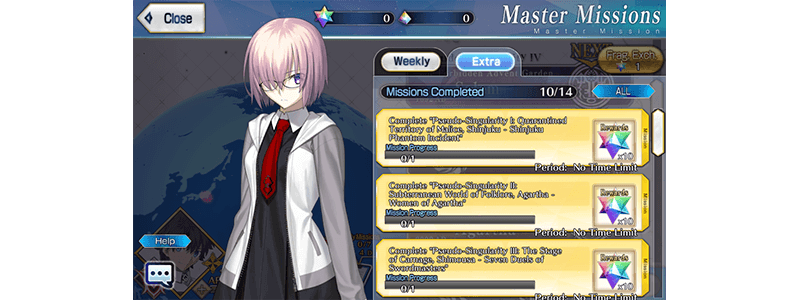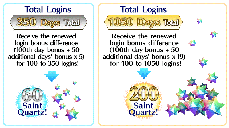 * New Masters must clear "Singularity F: Flame Contaminated City, Fuyuki - Section 3" in order to receive the login streak rewards.
