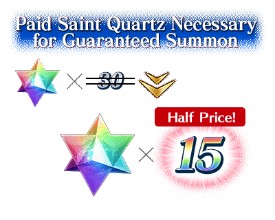The "Fate/Grand Order 3rd Anniversary Guaranteed Summon (Class Specific)," a 10x Summon with one ★5 (SSR) Servant guaranteed (Limited Time Servants included) is available for a limited time! To celebrate three years of Fate/Grand Order, this Guaranteed Summon will require only 15 Paid Saint Quartz, half the price of previous Guaranteed Summons! Please see the article linked from the banner above for more details. |