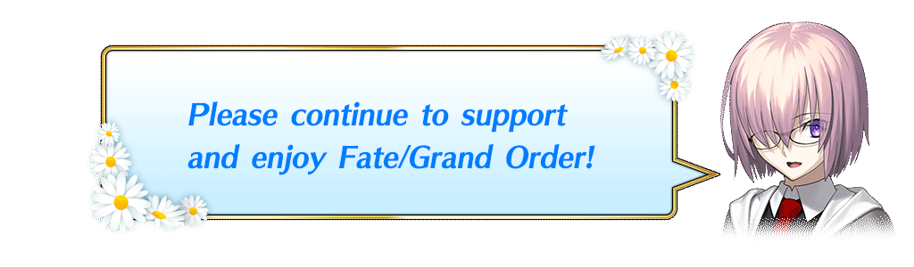 To celebrate our third anniversary, we'll be distributing a special login bonus. Log in for 9 days in a row during the below period to receive presents including Hero Crystal: Corona Fou ALL ★4 (ATK), Hero Crystal: Meteor Fou ALL ★4 (HP), 10 Summon Tickets (worth 10 Saint Quartz Summons), and other fabulous rewards! |