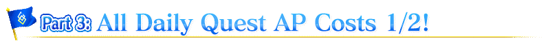 For a limited time, all Daily Quests (available within Chaldea Gate) will have their AP costs halved!