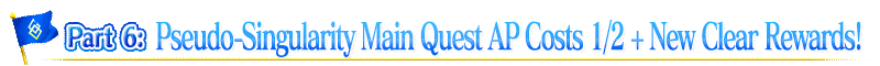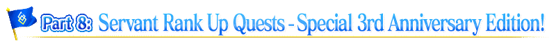 * Quest Clear Rewards, dropped items, Master EXP, Mystic Code EXP, and Bond Points will only be rewarded for the first clear.