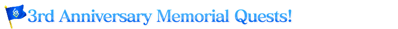 "Memorial Quests" are back to commemorate "Fate/Grand Order 2020 - 3rd Anniversary"! Challenge a collection of the most memorable battles from Singularities 1 to 7 and Pseudo-Singularities I-IV in the "3rd Anniversary Memorial Quests"!