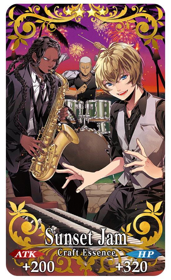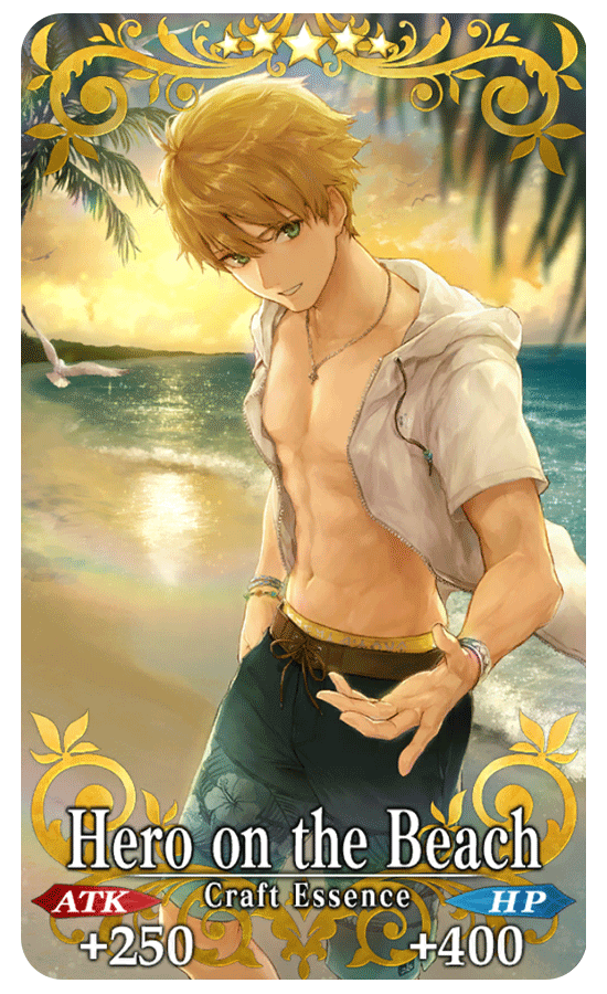 Equip Limited Time Craft Essences "★5 (SSR) Hero on the Beach," "★4 (SR) Sunset Jam," and "★3 (R) Writer's High" to gain an event item drop bonus within the Limited Time Event "Servant Summer Festival!".