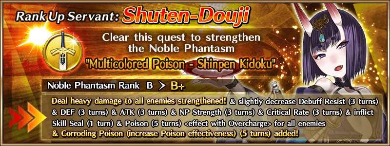 "Rank Up Quests" are special quests that enhance your Servants' abilities. A new Rank Up Quest will be released for Shuten-Douji.