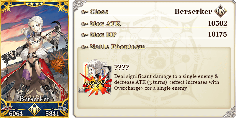* The name displayed for Servants whose True Names are hidden will change based on story progression. In some cases, the name displayed for their Noble Phantasm will also change.