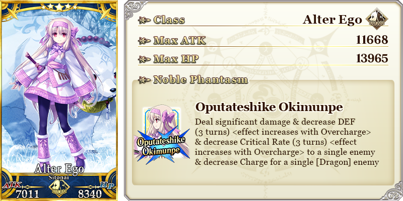 * Sitonai will be added to Story Summon from 2020-10-19 01:00 PDT. However, she will only be available after clearing Lostbelt No. 2.