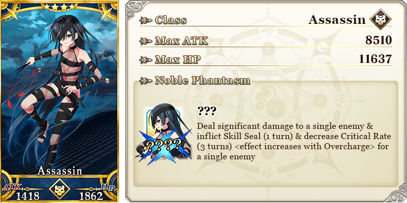 * The name displayed for Servants whose True Names are hidden will change based on story progression. In some cases, the name displayed for their Noble Phantasm will also change.