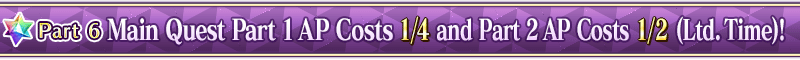 For a limited time, we're cutting AP costs to 1/4 for all Main Quest Part 1 story quests and 1/2 for all Main Quest Part 2 story quests!