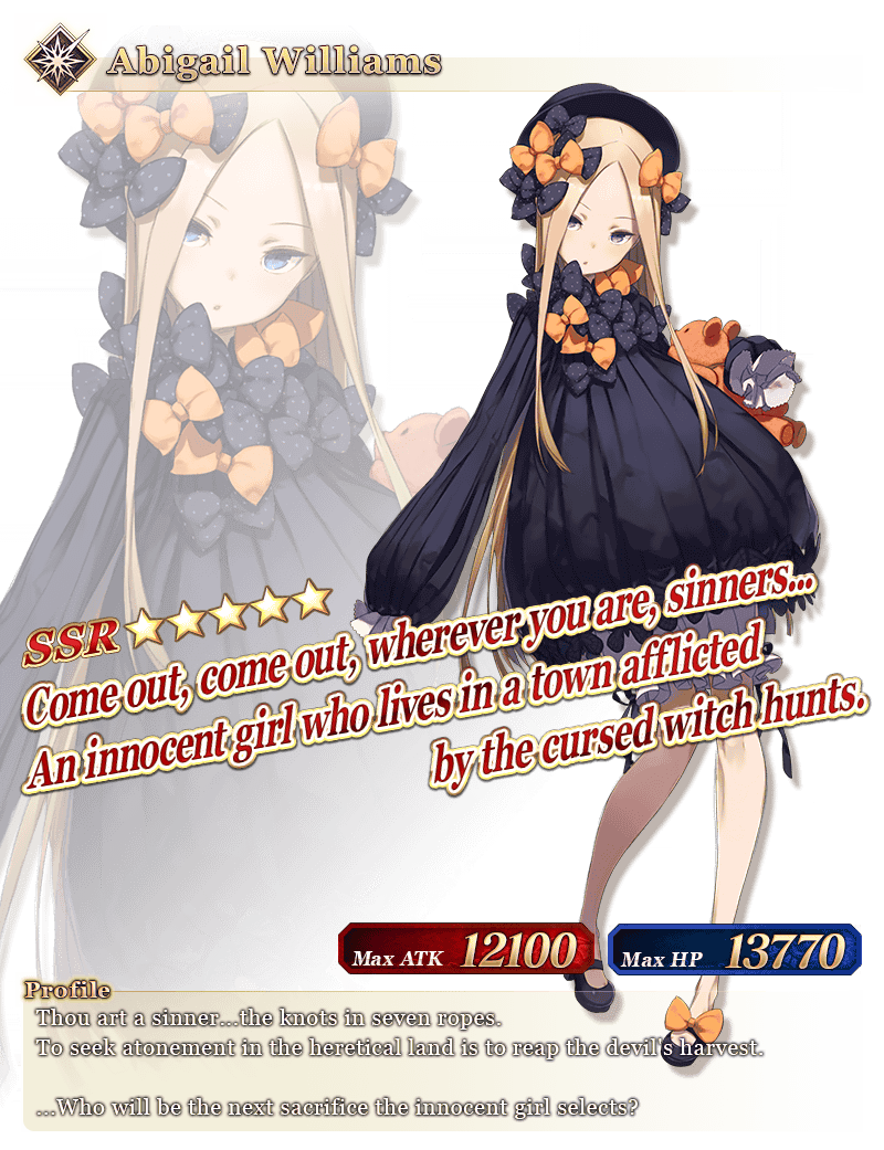* Abigail Williams will not be added to Story Summon after the Pickup Summon period ends.