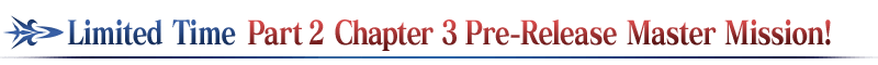 A limited time "Part 2 Chapter 3 Pre-Release Master Mission" will be added to the "Ltd. Time" tab on the "Master Missions" screen.