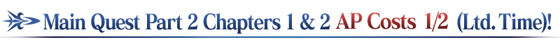 For a limited time, AP costs will be 1/2 for Part 2 (Lostbelts No. 1 and 2) story quests!