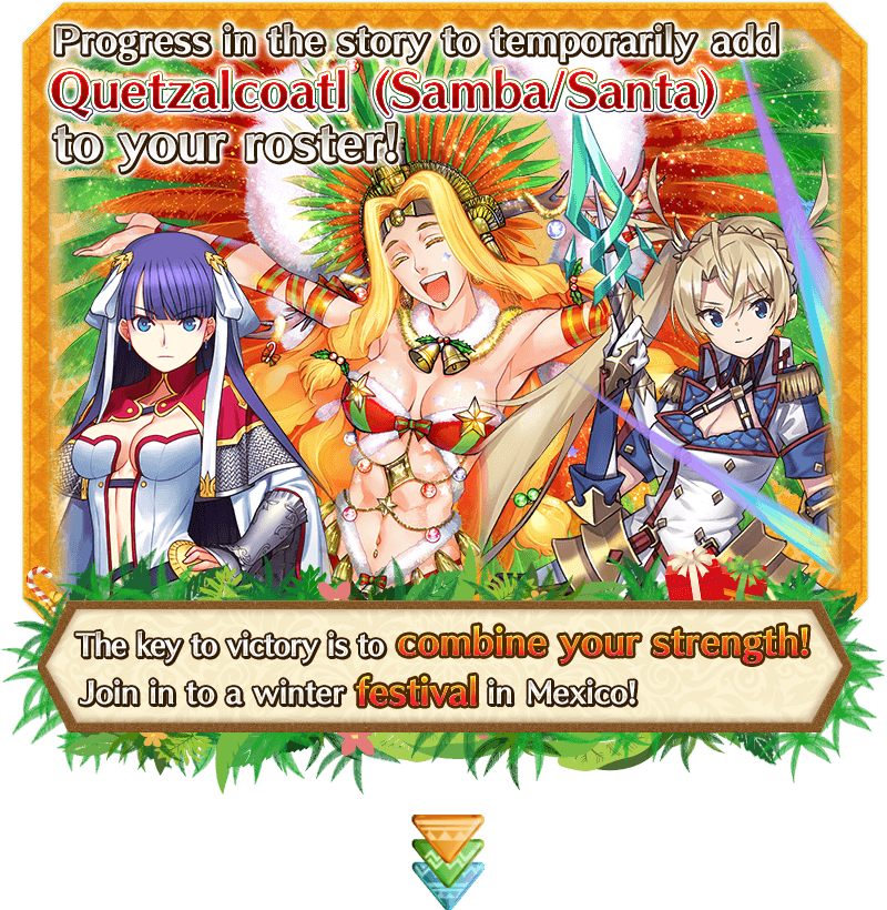 Continue the Main Quest to permanently add the Event Limited Servant "★4 (SR) Quetzalcoatl (Samba/Santa) (Ruler)" to your roster!