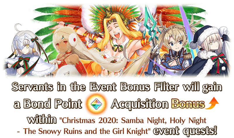 Servants displayed in the Event Bonus Filter will receive a Bond Points Acquisition Bonus during this event!